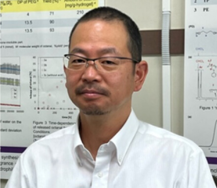 山梨県ではワインの生産が盛んですが、その製造過程で大量の搾りかすが発生します。一方で、柑橘系植物は世界中で栽培されている植物であるとともに、その加工過程で大量の搾りかすが発生します。いずれも産業廃棄物として廃棄されるもので、有効活用が望まれています。山梨県との共同研究において、私どもは両未利用資源を有効活用した繊維強化ポリマーの開発に成功しています。柑橘系精油成分から合成したネットワークポリマーに、ワイン搾りかすから簡便な方法で得たリグノセルロースナノファイバーを補強材として数%加えることで大幅な強度補強が達成できることを見出しました。リグノセルロースナノファイバーはポリマー中で凝集しないで、高分散した状態で存在できます。未利用資源のアップサイクルによって石油資源に依存しない付加価値のある材料を作り出すことで、持続性の高い社会を目指してまいります。