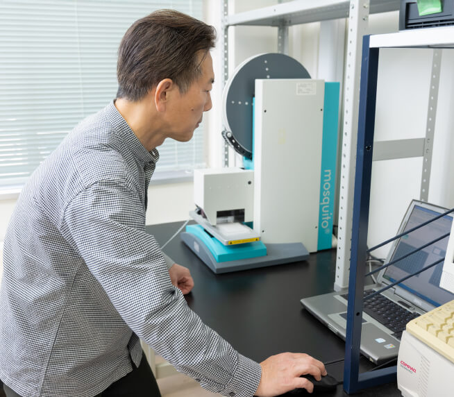 Our body contains tens of thousands of different types of protein molecules, and their unique functions enable us to live healthy lives. Our laboratory focuses on structural biology, with X-ray crystallography as our main research tool to elucidate the structure-function relationships of proteins. Since proteins are involved in all life phenomena, structural biology plays an essential role in various biological fields. In drug discovery, it is necessary to create compounds that specifically act on disease-causing proteins. Therefore, the three-dimensional structure of a target protein provides valuable information as a “keyhole” for creating a drug as the "key". Once the binding mode of a candidate compound to the target protein is clarified at the atomic level, the structure-activity relationship of the compound is visualized, and rational drug design can be achieved. We aim to determine high-resolution crystal structures of as many target proteins in complex with drugs as possible to contribute to "structural biology for drug discovery".